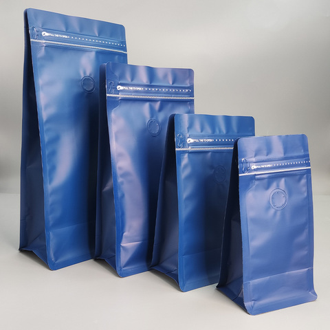 Bolsas de café impresas personalizadas con válvula Bolsa de fondo plano de papel de aluminio Bolsa de café sellada con calor reutilizable