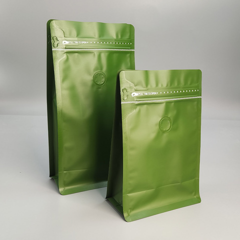 Bolsas de pie de fondo plano personalizadas con válvula Bolsas de embalaje de alimentos resellables con cremallera